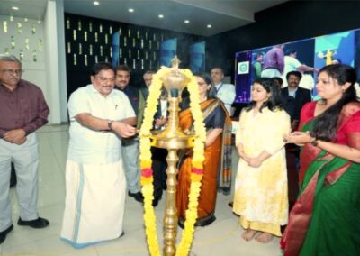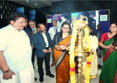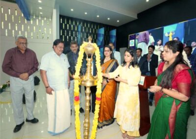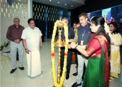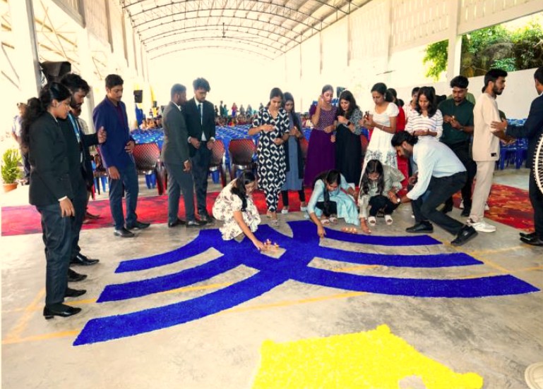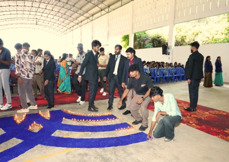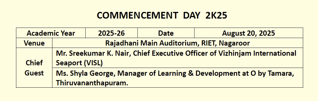 A key moment of the day was the ceremonial lighting of the lamp, symbolizing the dispelling of darkness and the pursuit of knowledge. The lamp was jointly lit by Dr. Biju Ramesh, along with the esteemed Chief Guests, Mr. Sreekumar K. Nair, Chief Executive Officer of Vizhinjam International Seaport (VISL), and Ms. Shyla George, Manager of Learning & Development at O by Tamara, Thiruvananthapuram. They were joined by other dignitaries, including Ms. Megha B. Ramesh, Associate Director, Rajadhani Group; Dr. Madhukumar S., Principal, RIET; Dr. Mahesh Krishna, Director, RIHMCT; Mr. Rajit Karunakaran,
