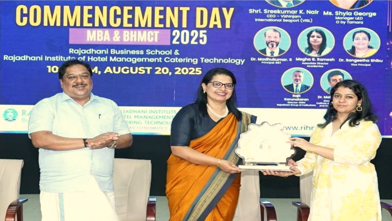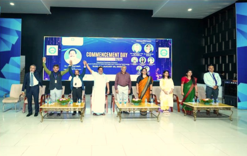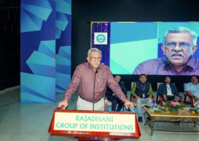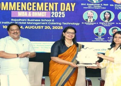 Commencement Day 2025 was a memorable occasion, marking the formal induction of new students for the academic year 2025-26 into the Rajadhani Business School (RBS) and Rajadhani Institute of Hotel Management and Catering Technology (RIHMCT). The program, a collaborative effort between the two institutions, aimed to welcome the students and their families and provide them with an introduction to the academic environment and opportunities ahead. The event was attended by over 1,000 people, including students, their families, and distinguished guests.