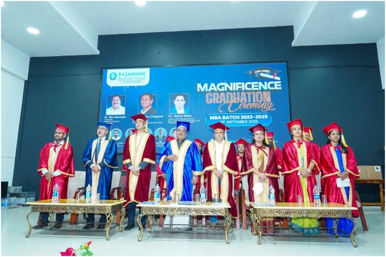 The Graduation Day of the 2023–2025 MBA batch of Rajadhani Business School was celebrated on 13th September 2025 with grandeur and pride. The solemn occasion marked the culmination of two years of rigorous academic journey, learning, and professional grooming of the graduating students.