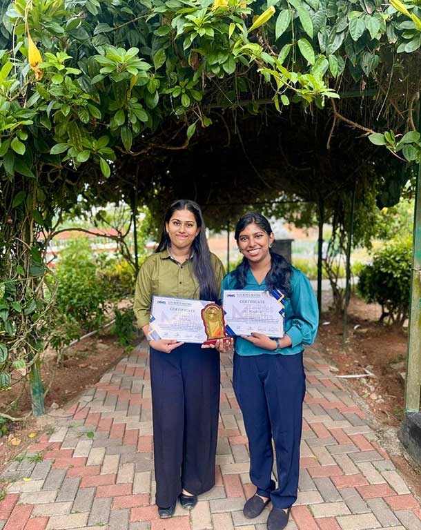 First year MBA students Nandana and Preethi A have been honoured with Best Research Paper Award at the conference *Human AI collaboration for Entrepreneurship, Business transformation and Sustainable development.