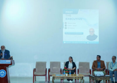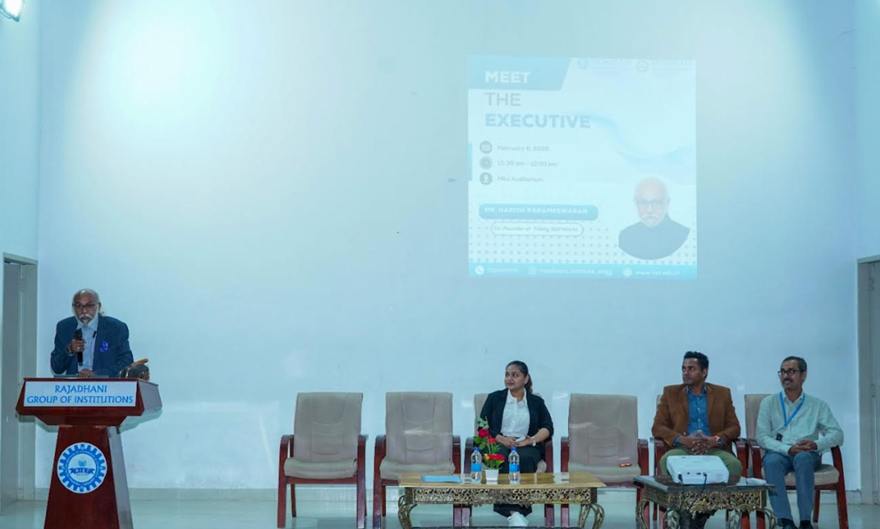 Rajadhani Business School (RBS) successfully organized a Meet the Executive Programme on 6th February 2026, from 10:30 AM to 12:30 PM, at the Mini Auditorium. The programme was exclusively arranged for the MBA (2024–2026) and (2025–2027) batches with the objective of providing students practical exposure to industry realities and entrepreneurial journeys.